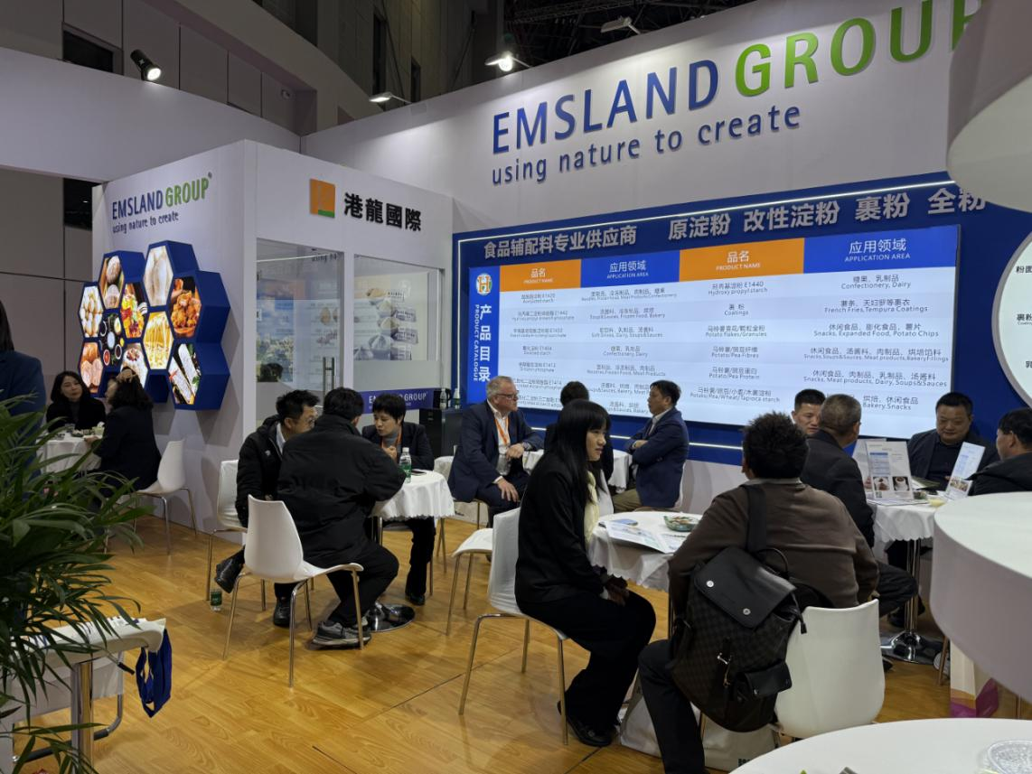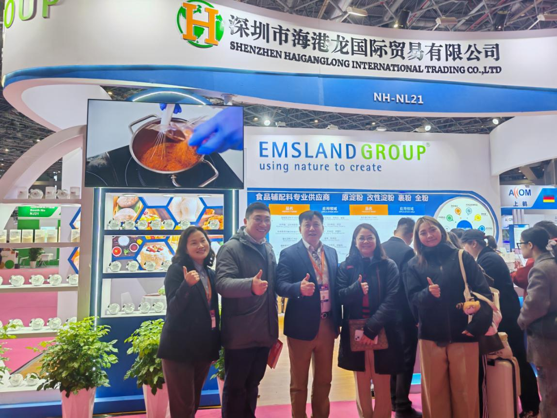 During the exhibition, Mr. Kemper, Chief Sales Officer (CSO) of Emsland Group—a renowned German processor of potato and pea starches and a longstanding strategic partner of Haiganglong—visited the company’s booth. Together with Mr. Michael, Chairman of Shenzhen Haiganglong International Trading Co., Ltd., they exchanged insights on global market dynamics, the evolving landscape of the Chinese market, and future collaborative initiatives. Both parties reaffirmed their commitment to deepening their partnership to expand the application of high-quality starches and plant-based ingredients in China.